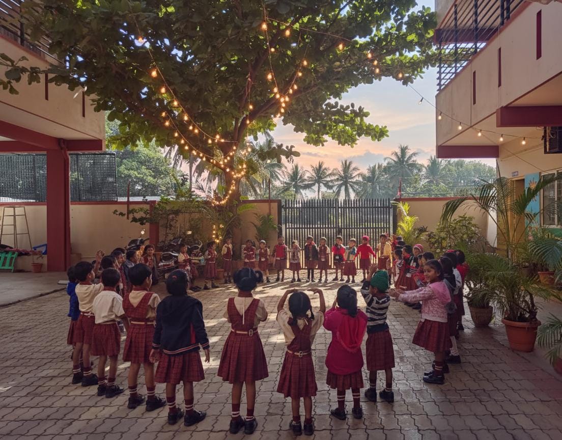 We follow the Karnataka State Board Curriculum from Pre-KG to 10th Std, enriched with: